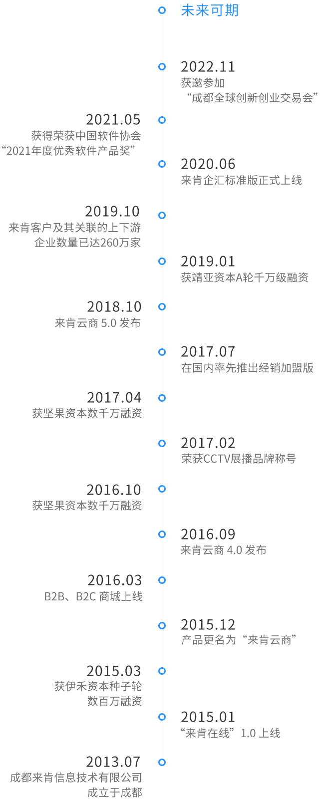 成立至今,来肯一直用专业和专注创造价值与品质,已获260万+企业的注册使用。